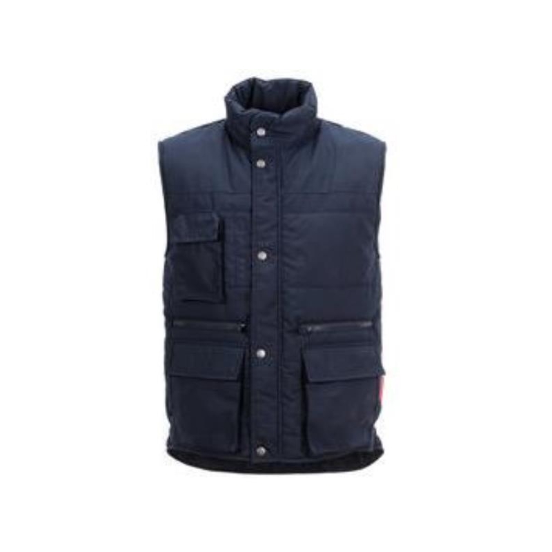 Gilet de travail multipoches TURBO. Tissu extérieur 80% polyster 20% coton, rembourrage 100% polyester, doublure 100% polyester. 2 poches latérales plaquées avec rabat. 2 ouvertures de poche latérales. 2 poches avec fermeture éclair. 1 poche pour téléphone portable avec rabat sur la poitrine droite. 2 compartiments stylo. 1 poche intérieure. manche avec cordon élastique. Taille : XS à 8XL. Coloris : marine