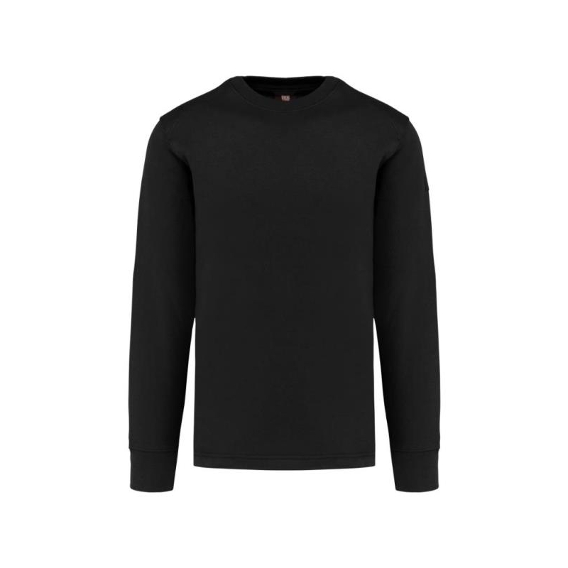 Sweat-Shirt WK4001 300g/m². Manches Montées 80% coton / 20% polyester. Molleton 3 fils avec traitement LSF. Lavable à 60°. Col rond et bas de manches en bord-côte. Poche zippée invisible côté droit. Renforts sur épaules et coudes pour plus de résistance. Porte-stylo sur manche gauche. Finition demi-lune au dos. Lien d'accrochage dans le col. Finition double aiguille au bas du vêtement et dos rallongé pour plus de confort. Tailles : de XS à 5XL. Coloris : Black - Dark Grey - Forest Green - Navy - Red - Royal blue