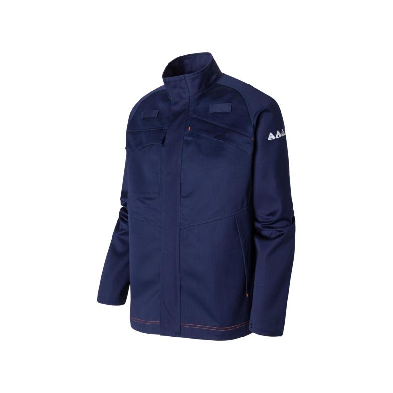 Veste multirisques ATEX INVICT LIGHT. Tissu: 75% coton, 24% polyester, 1% anti-statique - 315 gr/m², entretien industriel ISO 15797. Col montant, fermeture glissières sous patte pressionnée,. 2 passants poitrine pour détecteurs gaz, 1 poche poitrine plaquée sous rabat pressionné,. 1 poche asymétrique sous rabat pressionné avec détail surpiqure fantaisie et 2 poches côtés sous rabat avec points d'arrêts contrastés.. Manches raglan et poignets réglables par pressions. 1 marquage transfert FR pictogrammes sur manche gauche, 1 marquage transfert FR zone atex sur manche droite.. La veste doit être portée impérativement avec le pantalon pour respecter les exigences de ces normes.. Normes: Zone ATEX - EN11612 - EN11611 -EN1149/5- EN13034 - IEC61482-1-2. Tailles: XS à 4XL. Coloris: marine.